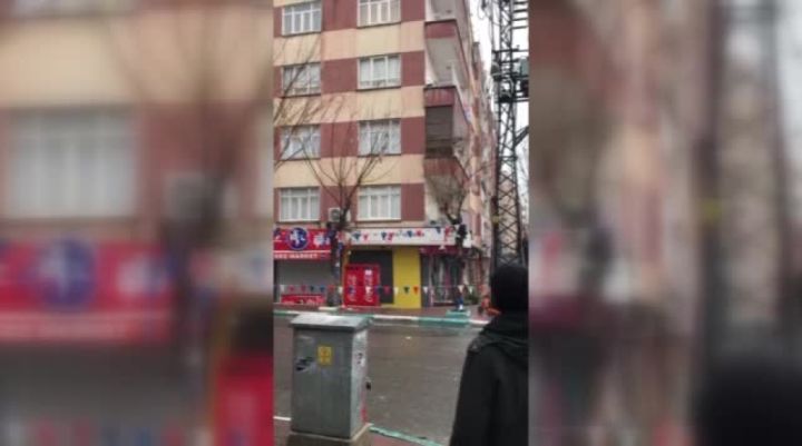 Haliliye ilçesi Bahçelievler Mahallesi'nde depremde hasar gören binanın yıkılma anı kameralara yansıdı.