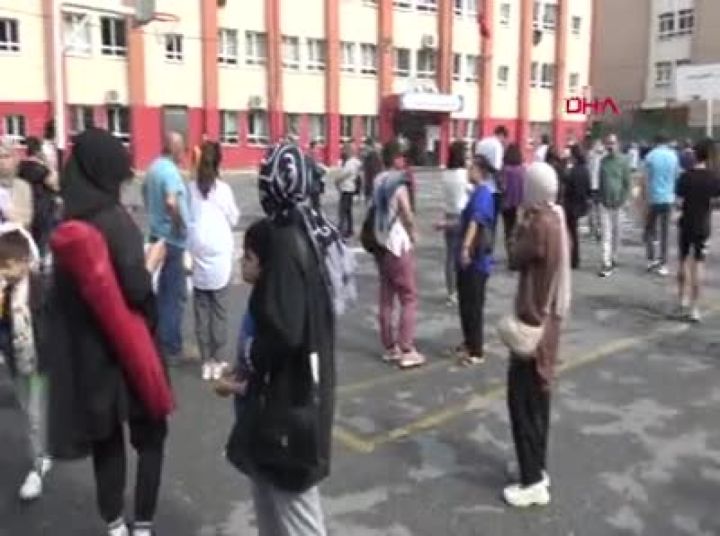 İstanbul Avcılar'da Yükseköğretim Kurumları Sınavı (YKS)'na geç kalan öğrenci kapıya tırmanarak içeriye girmeye çalıştı.