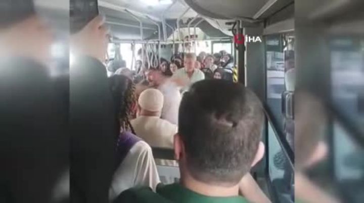 İstanbul Arnavutköy'de otobüste taciz iddiası ortalığı karıştı. Birbirine tekme ve yumruklarla saldıran şahıslar cep telefonu kamerasıyla böyle görüntülendi.