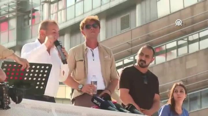 Bolu Belediye Başkanı Tanju Özcan, CHP Genel Merkezi yakınlarında parti önündeki otobüsün üzerinden kalabalığa seslendi. Tanju Özcan'ın konuşması esnasında 'Şimdi in o koltuktan, al bu koltuğu git evinde otur' diyerek sandalye fırlatma anları kamerayla kaydedildi.