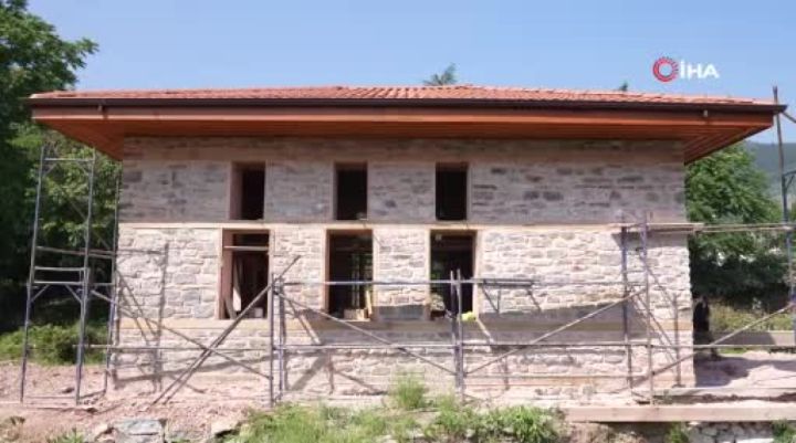 Bursa'da Tarihi Filiboz Mescidi'nin kaba inşaatı tamamlanırken ince işçilikleri devam ediyor.