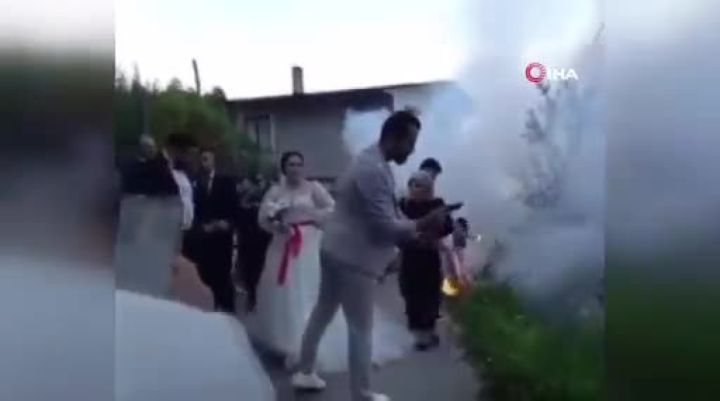 Trabzon'da düğün öncesi çekilen görüntüler şoke etti. Gelin eline silahı alarak havaya ateş açtı.