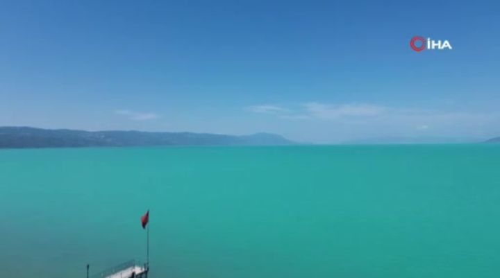 Bursa'da İznik Gölü, plankton patlaması sonrası turkuaza bürünmesiyle görenleri mest etti. Turkuazın içinde kalan bazilika ise vatandaşlar tarafından yoğun ilgi gördü.