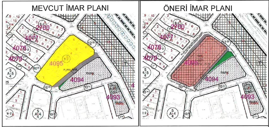 Bitişik nizamlı 2 katlı yapılaşmanın bulunduğu 4.732,76 metrekarelik parsele 2.21 emsal ile 7 kata kadar yapılaşma izni verilmişti.