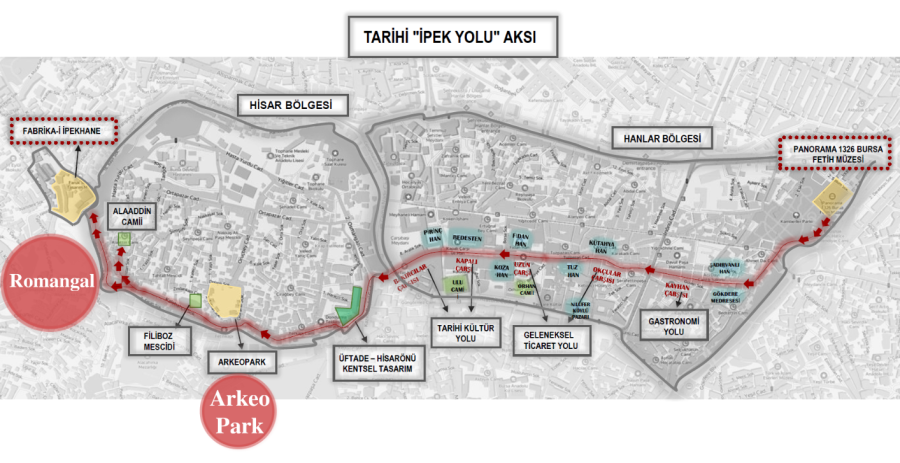 Şehrin ipekçilik kültürünü de yeniden hatırlatacak proje kapsamında geçmişin dokusu modern dokunuşlarla harmanlanacak.